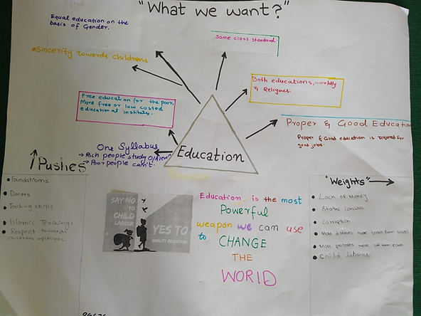 In this regard we looked at the SDG 2 – No Hunger, as an example for the students. The students were then left on their own to think about their particular SDGs and map out the multiple forces of their particular issue in a Pakistani context.